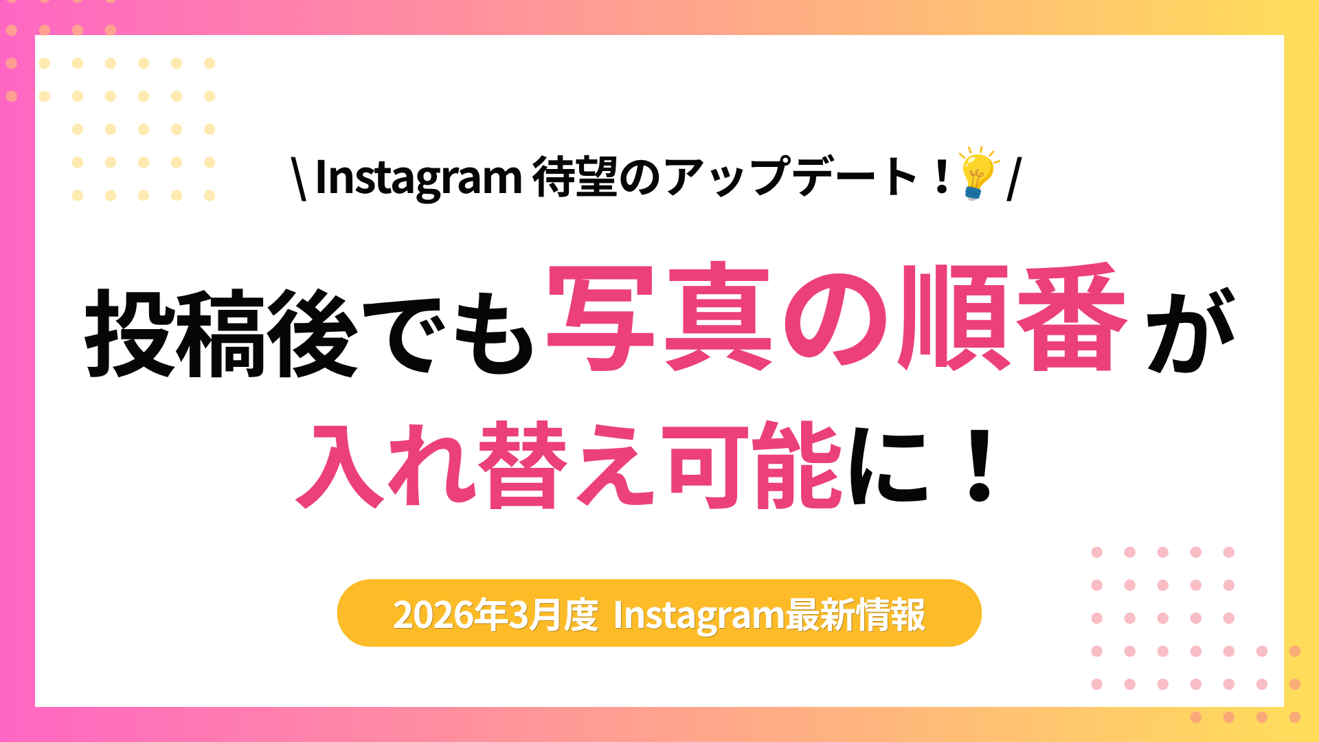 【2026年3月最新】Instagramアップデート!投稿後でも「写真の順番」が入れ替え可能に!
